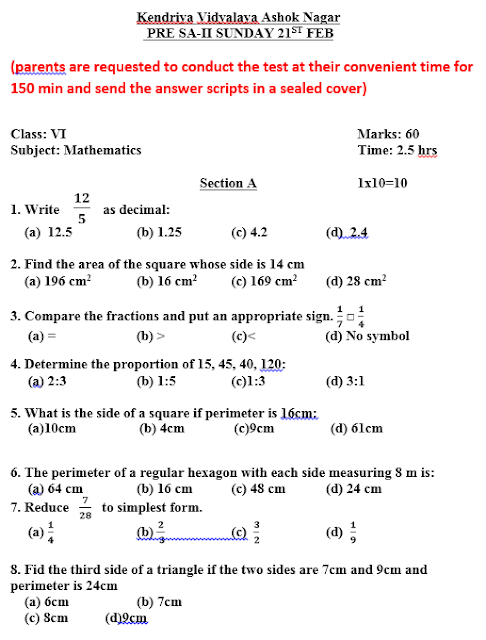 SA1 CLASS VI REVISION TEST